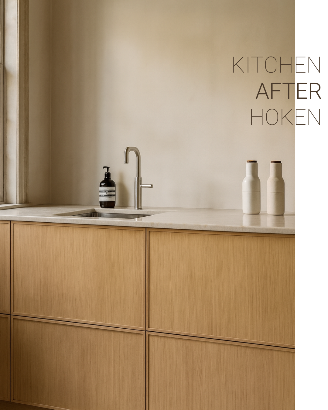 Bij HOKEN Studio geloven we dat doordacht design voor iedereen bereikbaar moet zijn. Met onze op maat gemaakte keukenfronten geef je jouw bestaande keuken een verfijnde uitstraling zonder een volledige verbouwing.